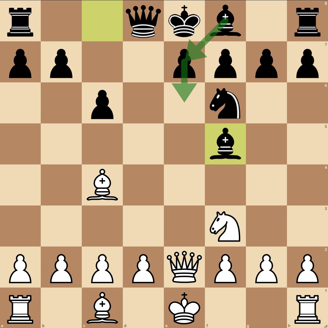 Black is forced to play 1...e6, White simply retreats 2.Qe2