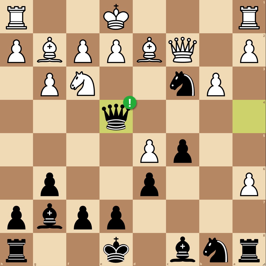 We are up a piece, but White has pinned our knight to the queen. Unfortunately, moving it isn't an option. Can Black do anything else to save the knight? If you were optimistic and said "Yes!", your intuition was correct as Black can play 1...Qa4!